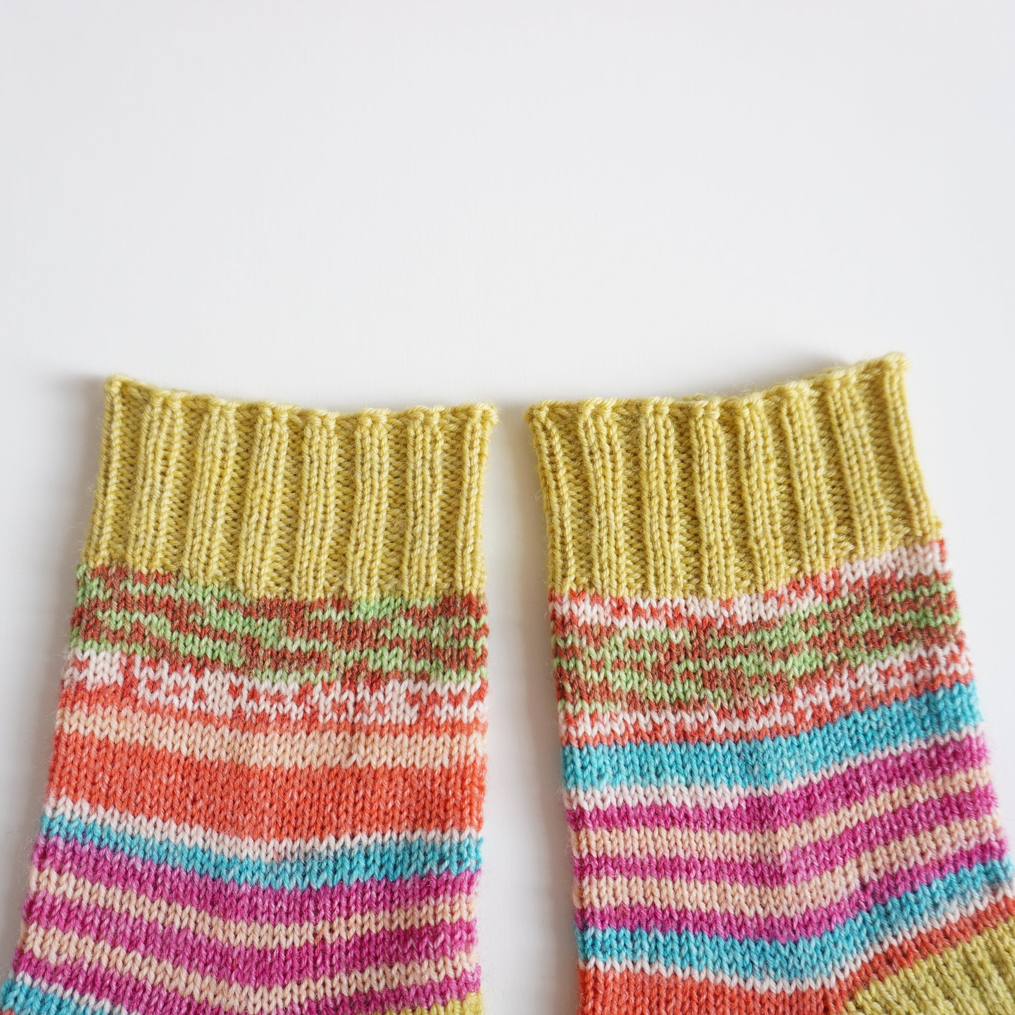 段染め糸の名前は「ドイツの風景ーローレライ」、色々調べてみると、ライン川の難所、ハイネの詩、伝説の妖精、船人を惑わせる・・・などが出てきました。靴下はレトロな可愛い色合いなので、「可愛い歌声」にしました。
