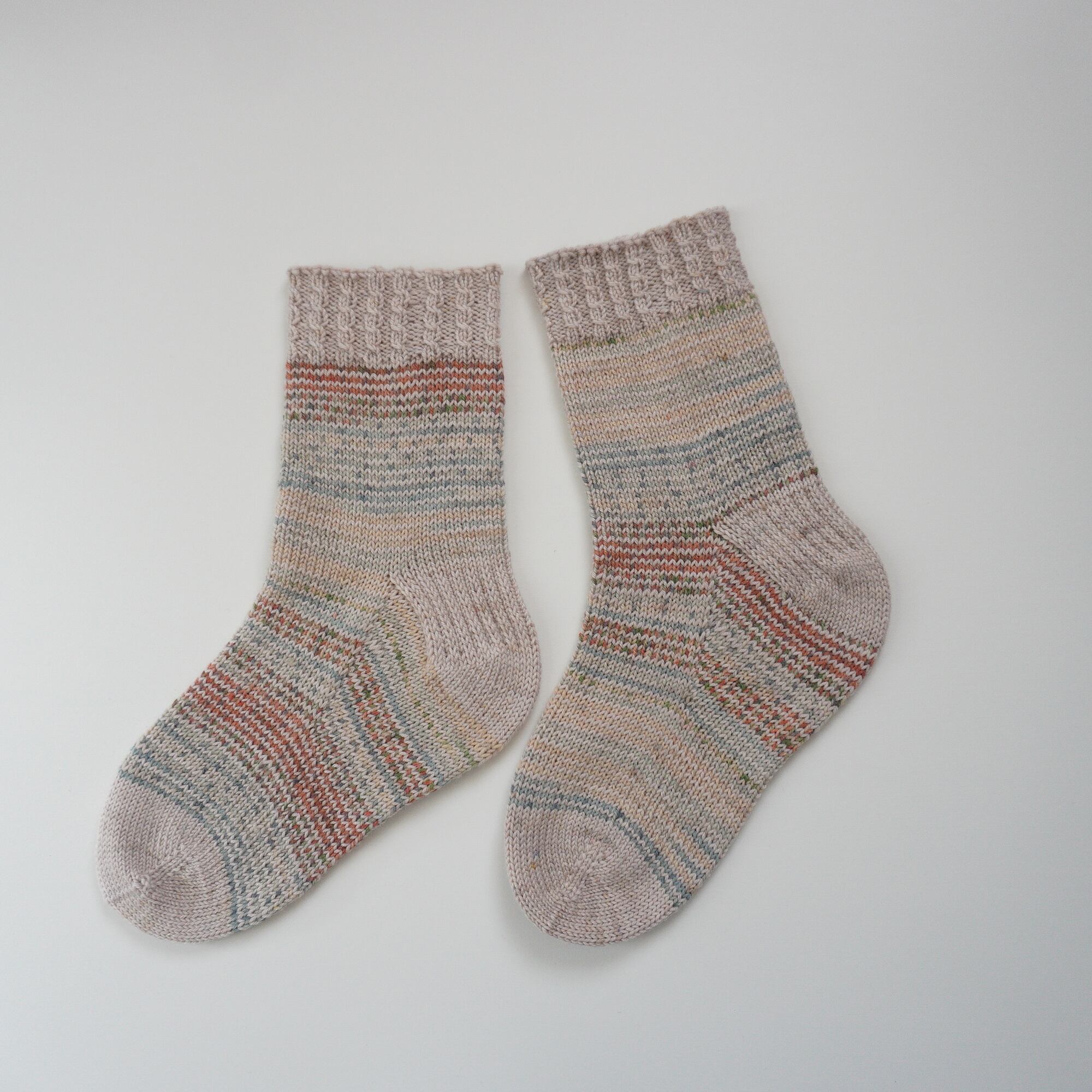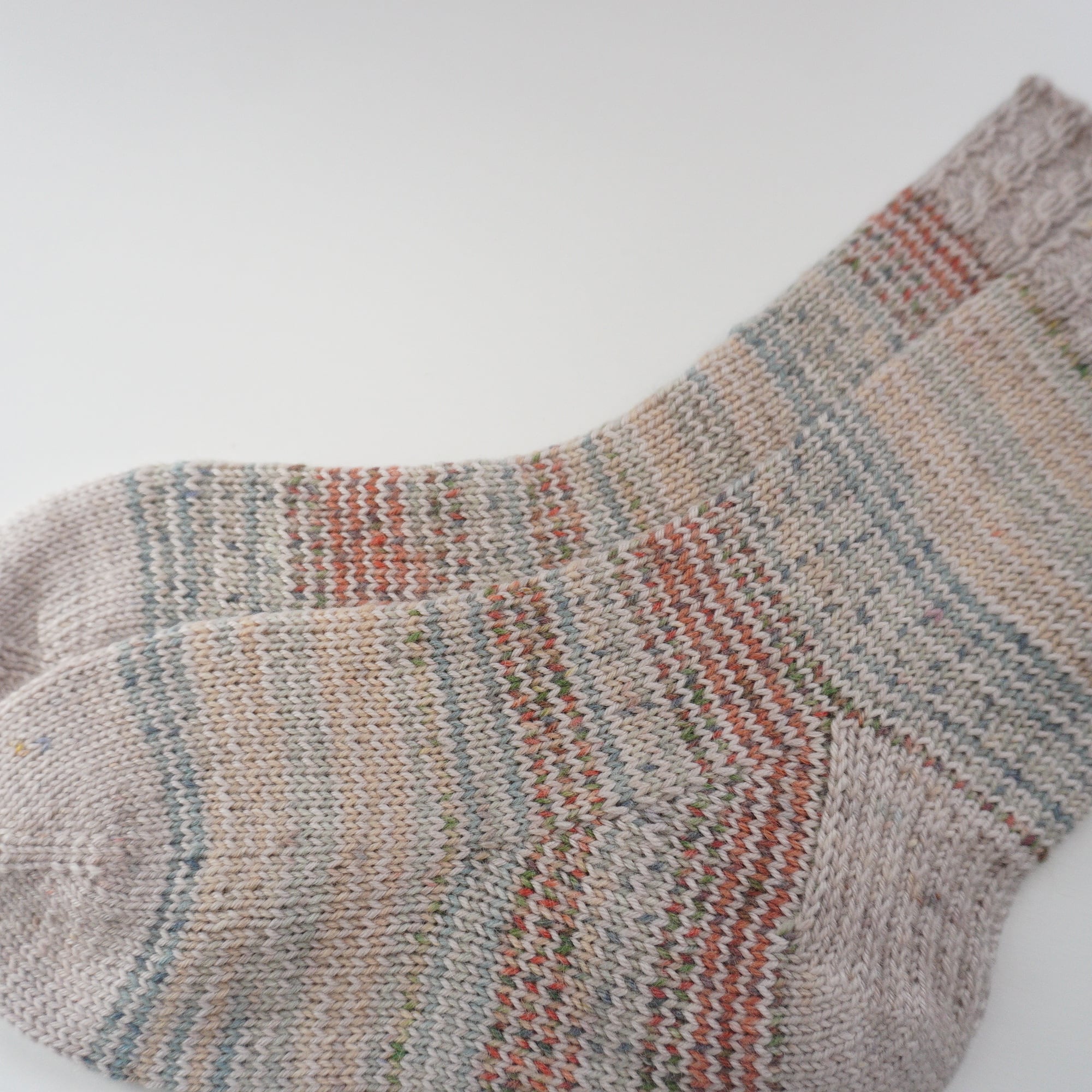 Opalのゴッホシリーズのソックヤーンと手染め毛糸でジョグレスストライプに編みました。
