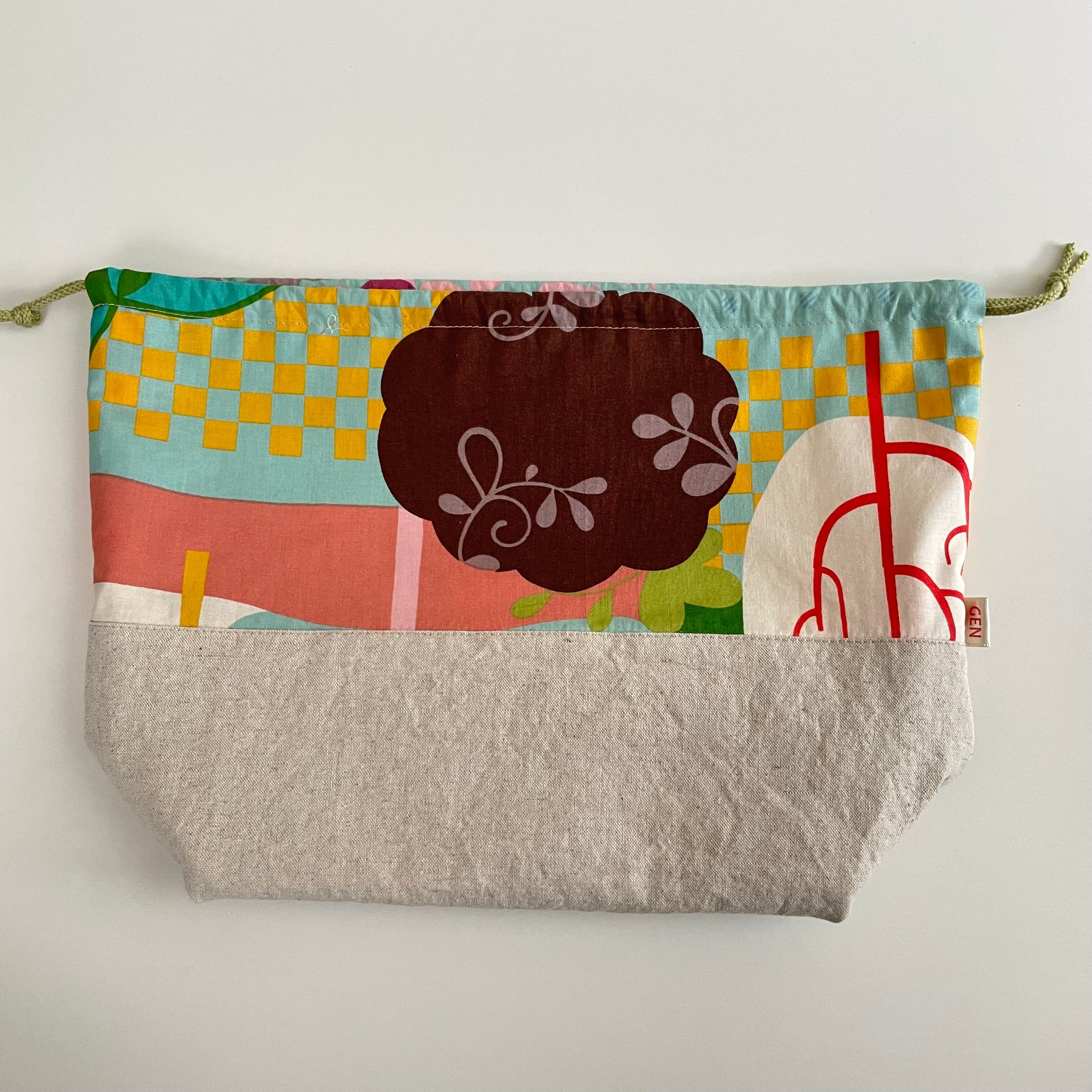 小物や靴下編み用のプロジェクトバッグとして使える巾着を制作しました。