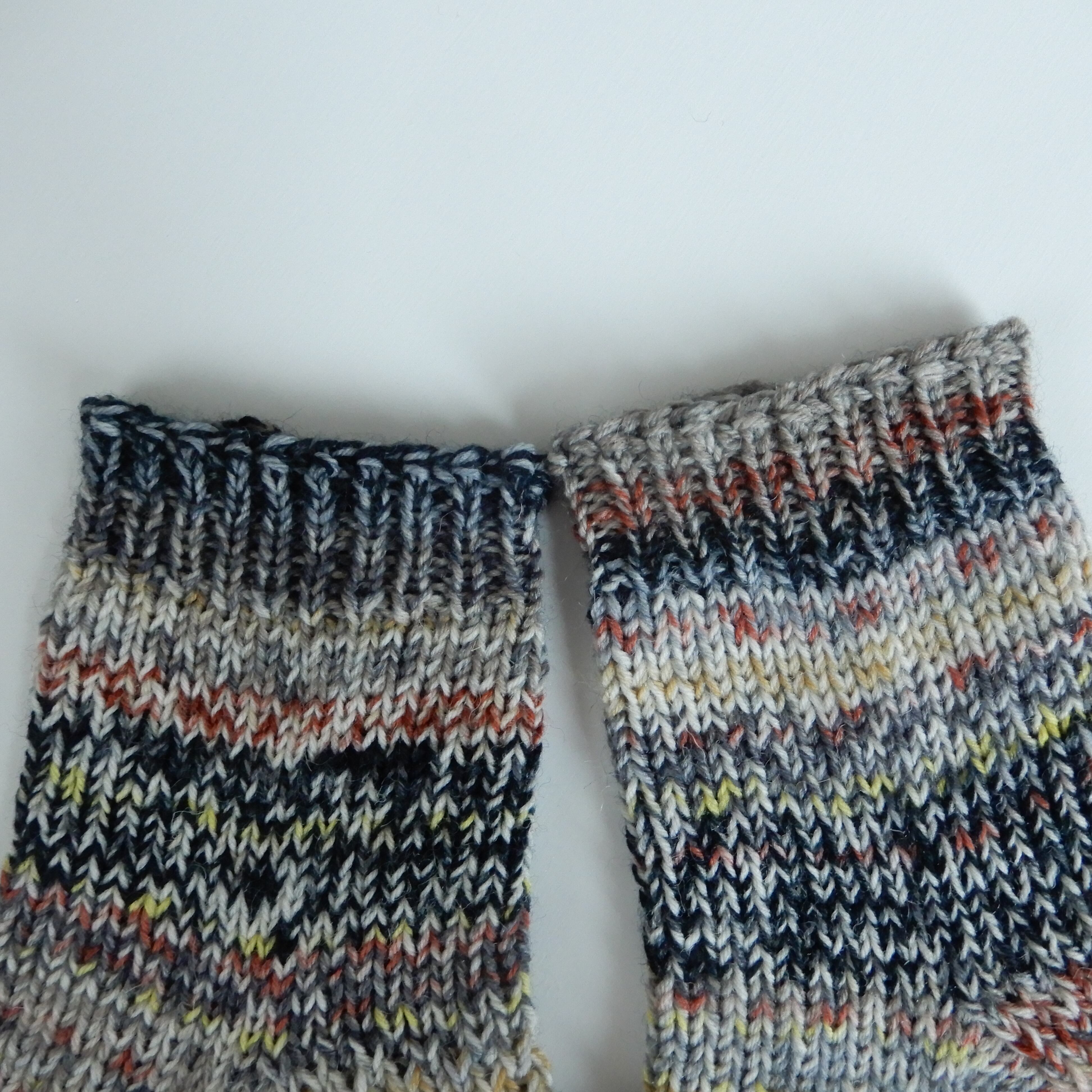 山小屋の暖炉の前で履きたくなる様な渋い色合いになりました。