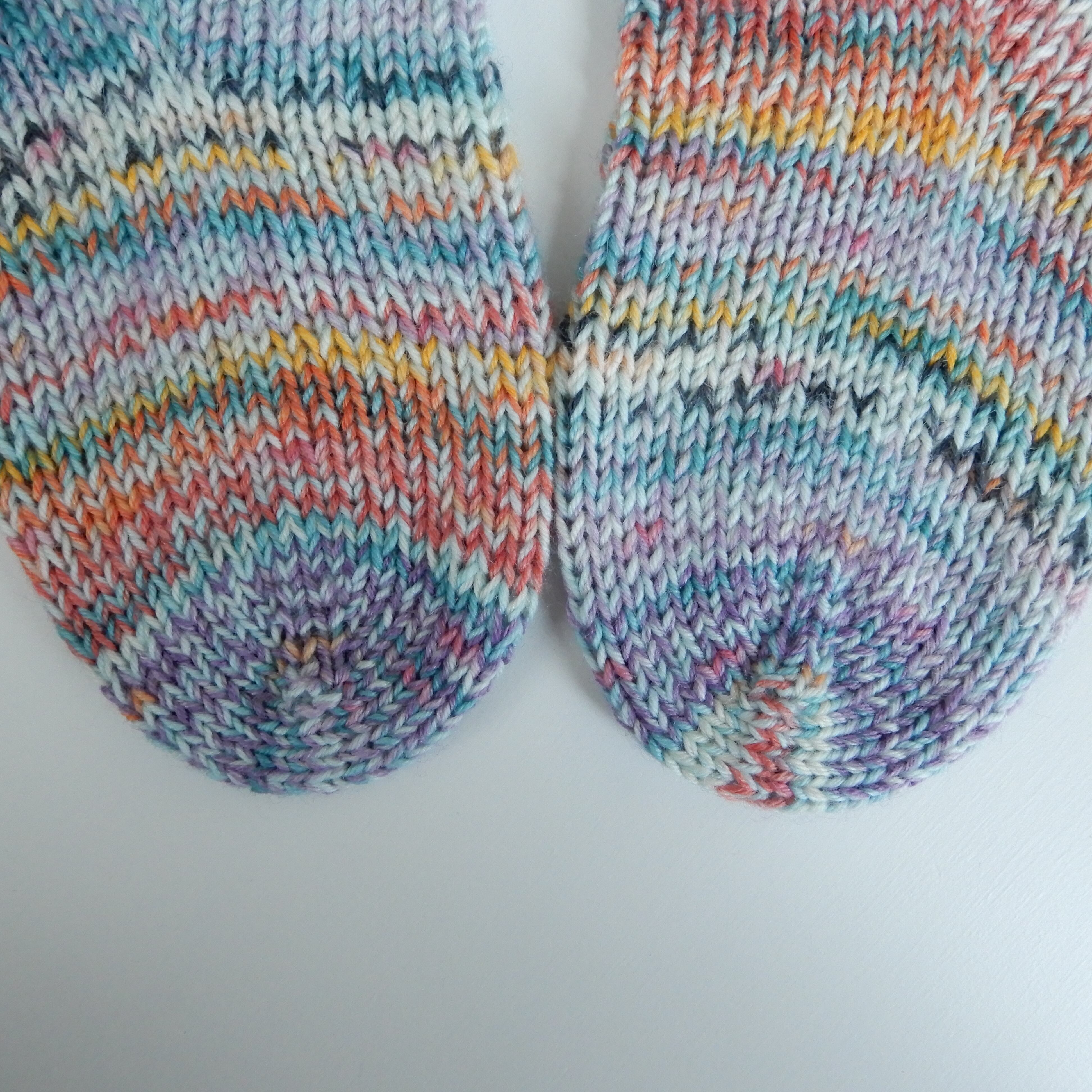 ソックヤーン2本どりで編んだ厚手の手編みの靴下です。