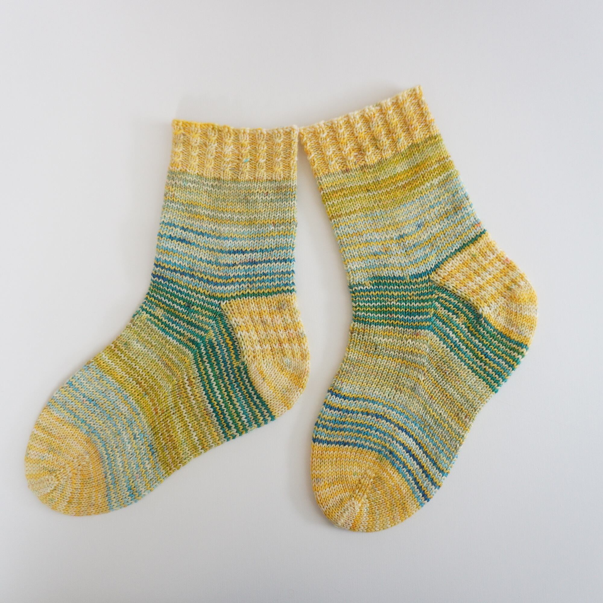 黄色の手染め毛糸がメインのジョグレスストライプです。